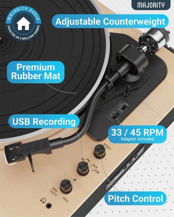 Combining eye-catching design with modern functionality, the Majority Folio Turntable is the perfect centrepiece for any music lover’s home. Compact, stylish, and packed with features, the Folio delivers the warmth of vinyl alongside the convenience of today’s technology.