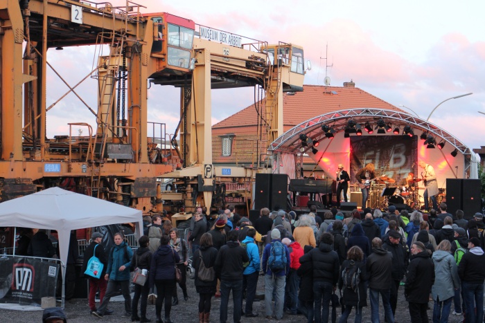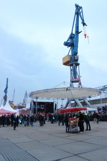 Elbjazz is hosted in various locations across Hamburg. The main site is the Blohm+Voss floating island, part of the dockyard, strictly out-of-bounds to the general public all year except during Elbjazz due to the secret nature of their vessel constructions. Abramovich had his mega yacht built here, complete with on board submarine, just one of the long line of exclusive clientele who are outfitted alongside government projects.
